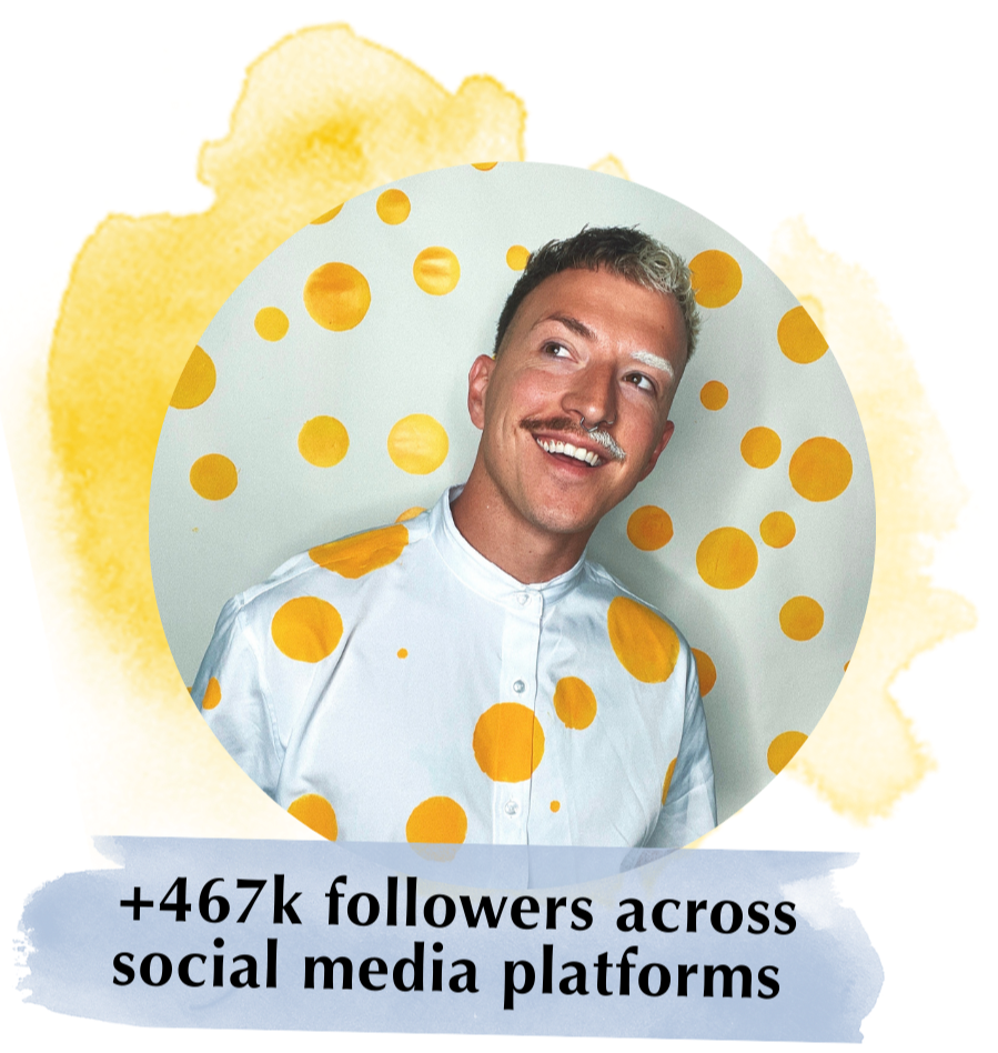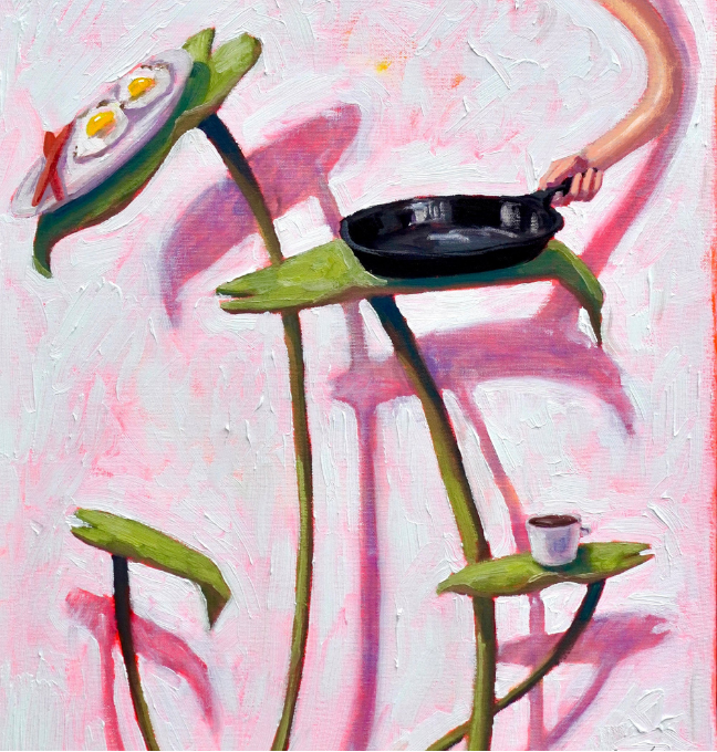 I love working across many mediums: gouache, watercolor, acrylic, oil, and illustration because experimenting keeps my creativity fresh and evolving. I’m especially known for playful projects like my “eggs on things” series and collections that explore unique color palettes, such as my all-pink works.